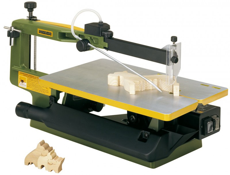 Литой алюминиевый пильный стол (размер 400 x 250 мм) можно освободить и сдвинуть назад для облегчения смены лезвий. Обычные лобзиковые лезвия с плоскими концами крепятся с помощью двух патентованных зажимов с большим усилием. Это обеспечивает хорошую постоянную центровку лезвий в раме.